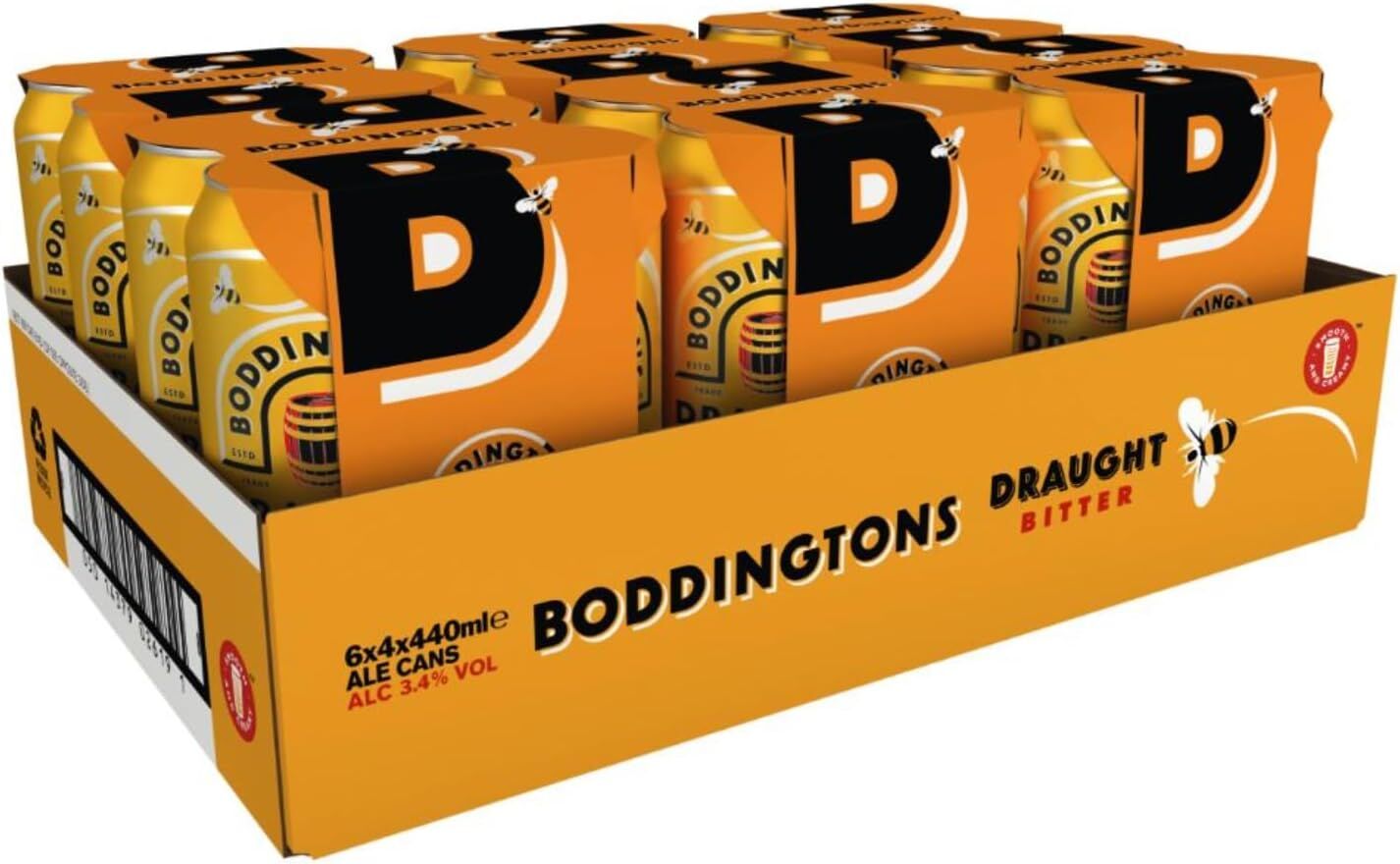 - This pack contains 24x440ml cans of Boddingtons Draught Bitter Beer, 3.4 percent ABV