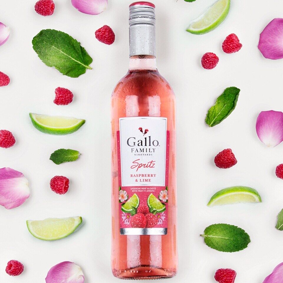 Your favourite Gallo Grenache Rosé has been gently spritzed and blended with natural flavours of juicy raspberry and zesty lime. Bursting with vibrant fruity notes.