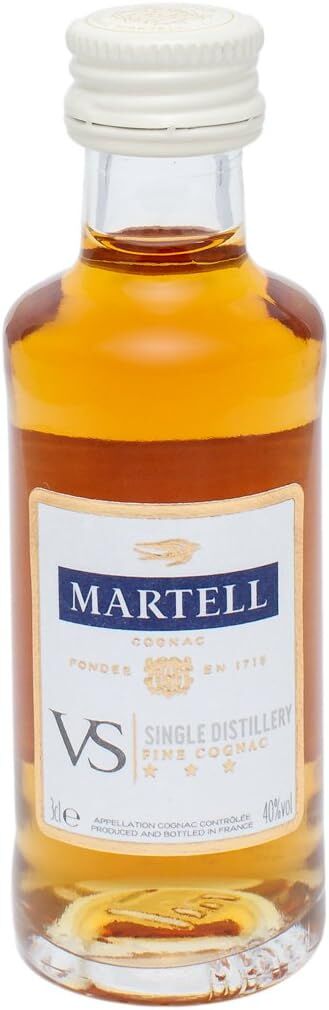 Miniature Martell VS Cognac was produced in the Borderies region of Cognac. This young brandy has a light golden silken hue and a delicate, fruity scent. On the palate, it is fruity with a flavour of oak wood. The finale is harsh yet brief.
