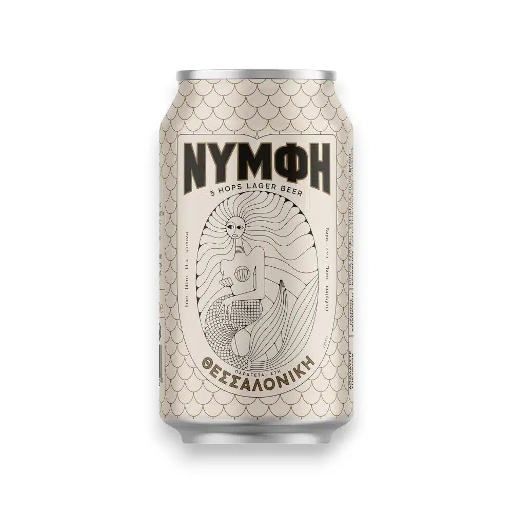 Nymfi’s visual identity is inspired by the mythology of the Mermaid of Thessaloniki, with a fish tail-like recess on the top of the label. The mermaid is a prominent figure in the beer’s branding, symbolizing the connection to the local area and its waters.