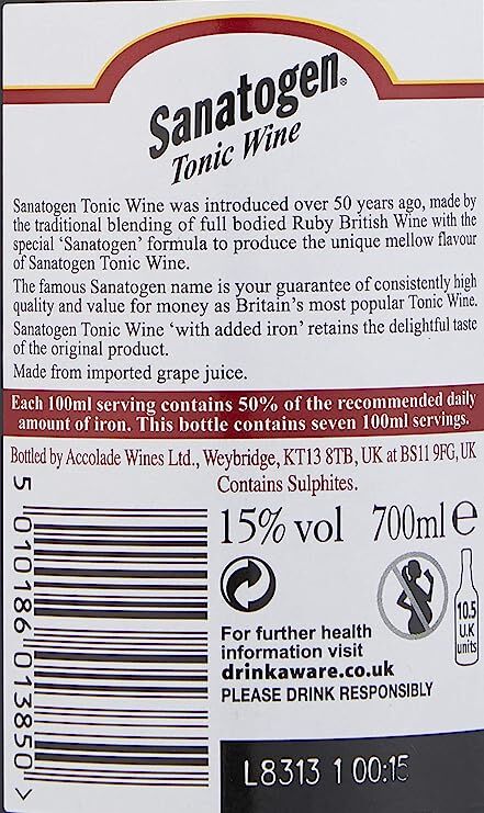 Sanatogen - English Tonic Wine with added Iron - 70cl - 15% ABV